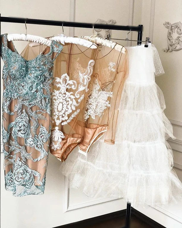 Chantelle's designs are heavily influenced by her travels, particularly to Paris, Monte Carlo, London and Dubai. From Dubai, she draws inspiration for the opulence and lavishness seen in her work, while her French influences bring elements of femininity and sophistication. Her collections, which feature a mix of pastel tones with metallic accents and 3D designs, are perfect for grand occasions such as weddings, gala events, and high-end social gatherings.